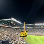 点が入ったら前後左右の人とメガホンタッチで喜び合う一体感が素晴らしい。←誰か知らんけど。たまたま後ろの席のおっちゃん達がほんと面白かった。